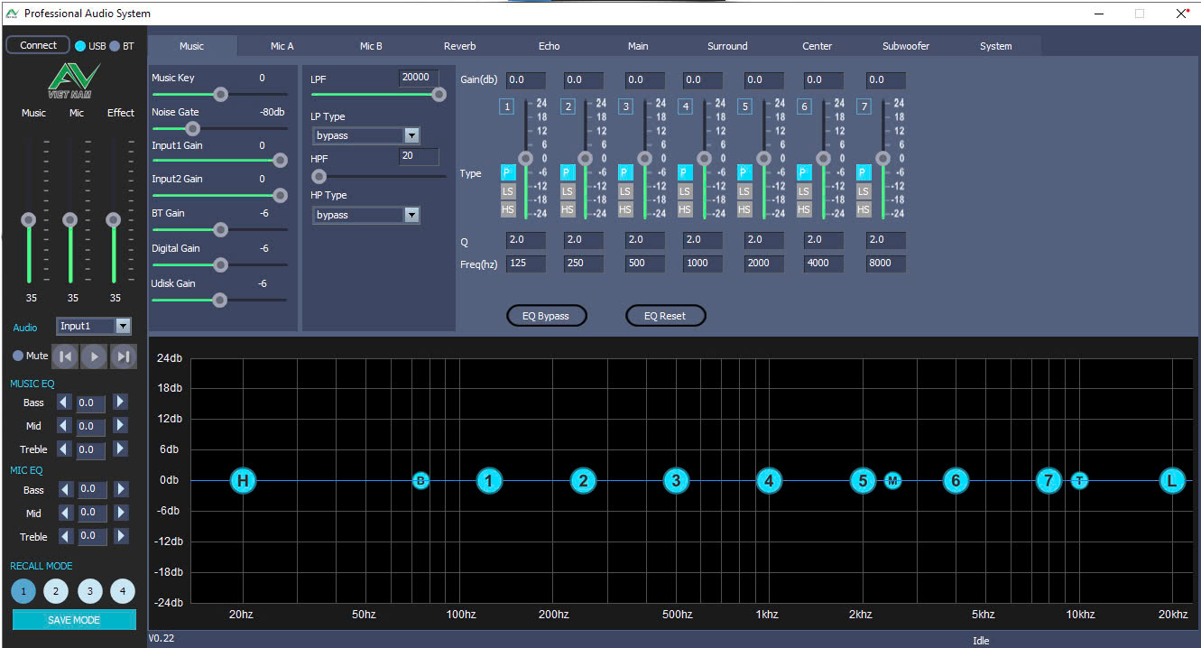 EQ ngõ ra chính: Equalizer tham số 7 băng tần